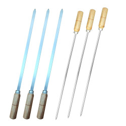 Flat Stainless Steel BBQ Skewers with Wooden Handle, Reusable Kabab Sticks Set